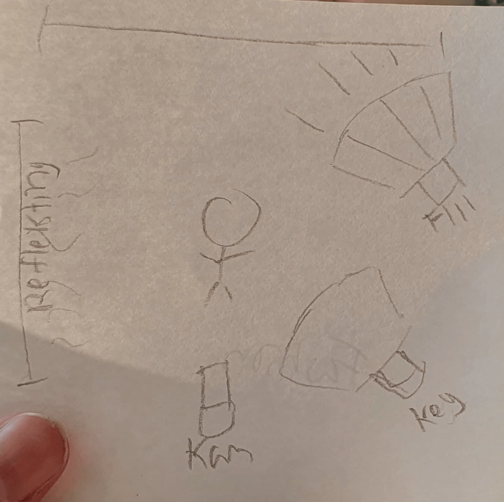 - Draw a diagram of and describe the three-point lighting setup.