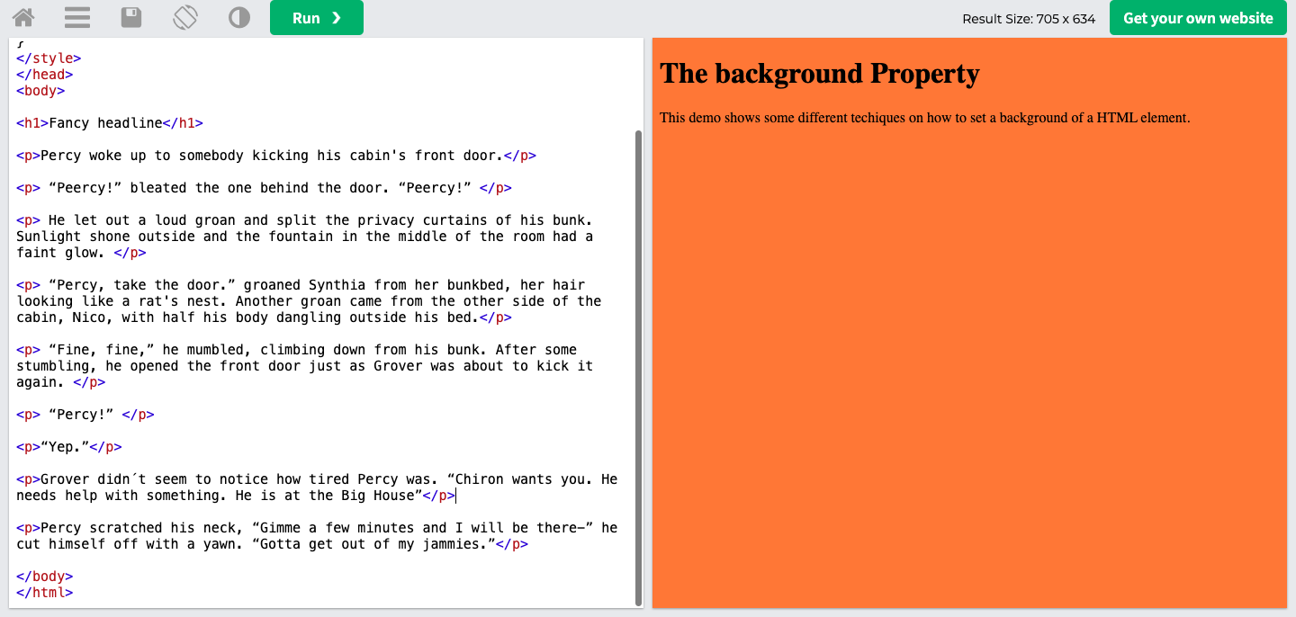 I played with the background on this website. I also put in some paragraphs from my fanfiction to show what it would look like.