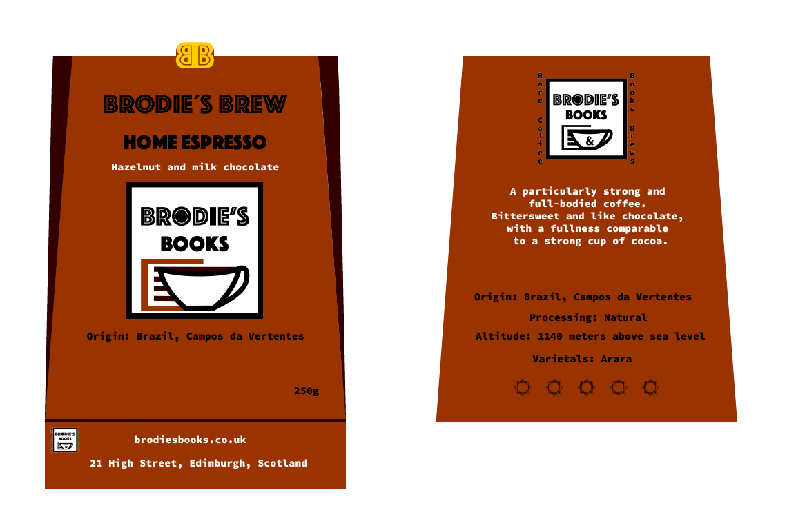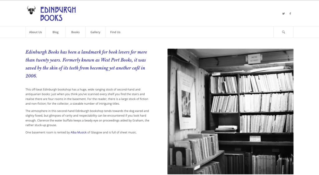 Their websites are very different in looks and feel. Edinburgh books are the closest to Brodies in terms of seeling-point. Their logos are also starkly different. Edinburgh has a buffalo, Armchair has a dragon sitting in an armchair, and Main has its name stacked on top of each other.