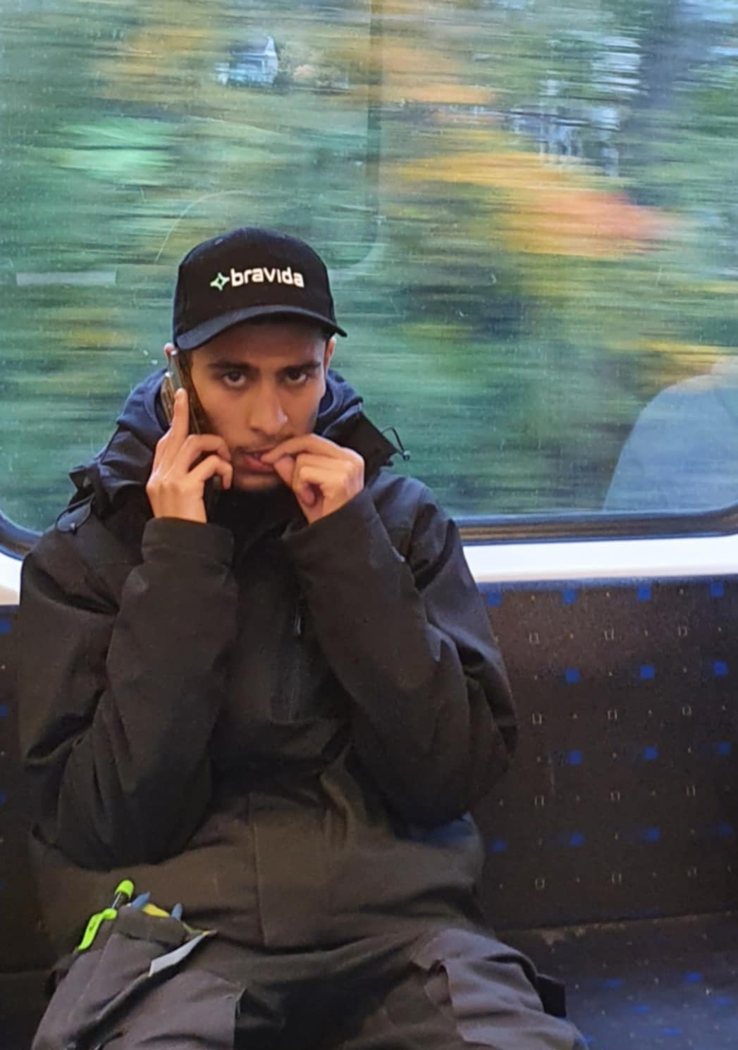 Dette portrettet er kalt «Stress i Fart» grunnet stresset i kroppsspråket til mannen, men også at bakgrunnen har motion-blur. Lokasjon er T-bane Linje 5, Oslo.